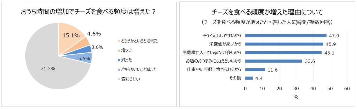 おうち時間の増加でチーズを食べる頻度が増えた人は約2割。理由は「チョイ足ししやすいから」