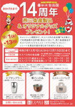 日頃ご愛顧いただいているお客様に感謝を込めて、下記のとおり14周年祭を開催いたしますので、ぜひご来館ください。