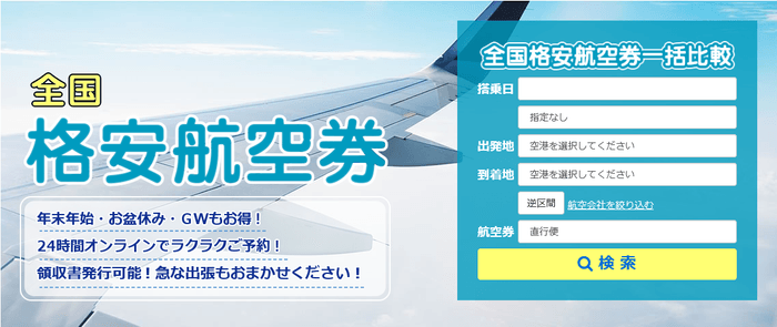 24時間オンラインでラクラク予約!JAL・ANA・スカイマーク・peach・Jetstarなど全国の航空会社を取り扱いOK