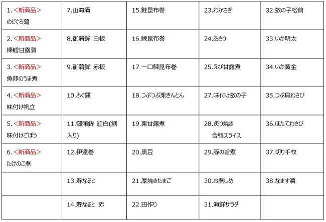■『100円おせち』全38種類ラインナップ (※No.1~6は新商品)