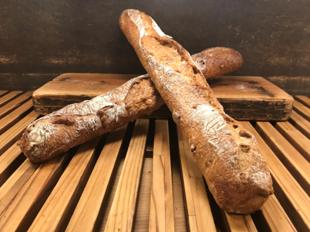 自家製粉した北海道産の小麦を使用した生地に、ローストしたくるみをぎっしり練り込みました。自家製酵母により風味豊かな仕上がりとなっています。