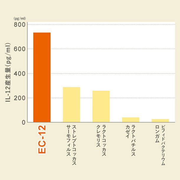 この乳酸菌EC-12は、他の乳酸菌よりも免疫を圧倒的に多く産生させるため、これからますます寒くなり、空気が乾燥し病気にかかりやすくなるこの季節の免疫UP食品としてもぴったりです。