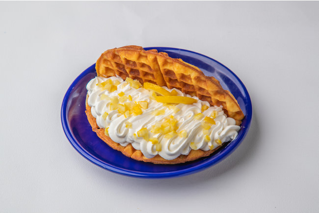 今回初めて登場する「ワッフルサンド」は、サクサクのワッフル生地にホイップとトッピングがたっぷりとサンドされており、それを”折りたたんで食べる“という新感覚のスイーツです。韓国で人気の持ち歩き屋台フードをカフェアレンジしました。