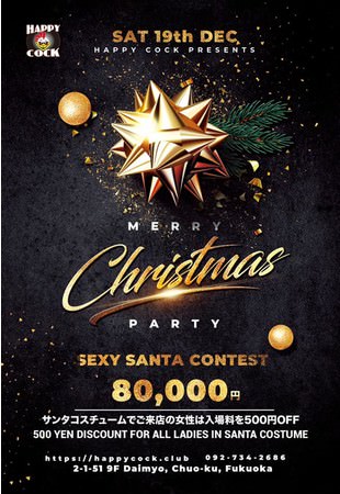 eREC合同会社(所在地:福岡県福岡市、代表:久本 了平)が運営する、福岡のクラブ「HAPPY COCK」は、2020年12月19日(土)、12月25日(金)の2日において、「CHRISTMAS PARTY」を開催することになりましたので、お知らせいたします。