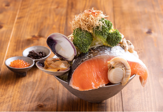 豊洲の仲卸業者から直接仕⼊れた新鮮な海鮮(⽩蛤・鮭・⾚海⽼・牡蠣・帆⽴・いくら・あさり・いかげそ) をあふれんばかりに盛り付け。創業当初より店名を冠した看板商品として、多くのお客様にご⽀持いただいている「こぼれやもんじゃ」を濃厚なクリームソースで仕上げました。進化し続ける「こぼれやもんじゃ」をお楽しみください。