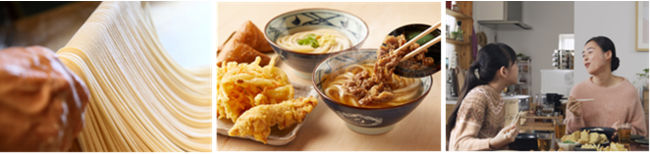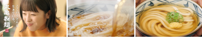 「おいしいうどん」は、徹底的に鮮度にこだわりぬいた「生きている」状態で提供されて初めて実現できる、と丸亀製麺は信じています。丸亀製麺がお届けするうどんは、国内 850 を超えるすべての店で一軒、一軒、手間を惜しまず、毎日、100%国産の小麦粉から打っています。打ち立てのうどんにこだわり、その場で切って、茹でて、作り立てをお客さまに提供しているからこそ、もちもちでおいしい独自の“丸亀食感”をお届けできています。