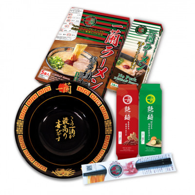 賞品 :一蘭おみやげセット~松~(丸どんぶり、おみやげ商品詰め合わせ34食分、60周年記念箸)