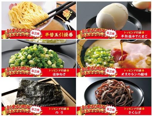 内容 :期間中、一蘭公式アプリでスクラッチに挑戦すると、どんぶりやお箸、おみやげ商品や