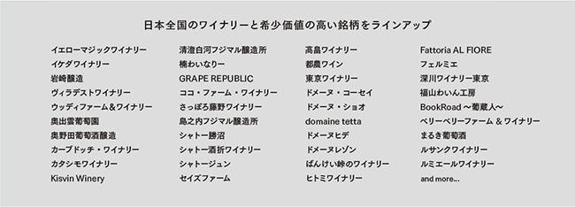 「wa-syu」では、日本全国のワイナリーと希少価値の高い銘柄をラインアップ。