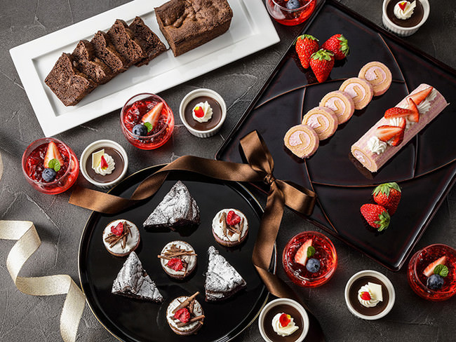 ガトーショコラやチョコレートプリンなど、バレンタインならではのチョコレートスイーツと、苺のショートケーキやクランベリーゼリーなどのベリースイーツをブッフェスタイルでお楽しみいただけます。さらに、パティシエがその場で仕上げてご提供する苺のブリュレやチョコレートのクレープなど、シェフサービススタイルのスイーツもお召し上がりいただけます。その他、トマトとモッツァレラチーズのピザ、サンドイッチの盛り合わせ、サラダバーなど、スイーツ以外のお食事や、シェフがお客様の目の前で作るオムレツ、大きな器で作るチーズパスタなどもご提供します。