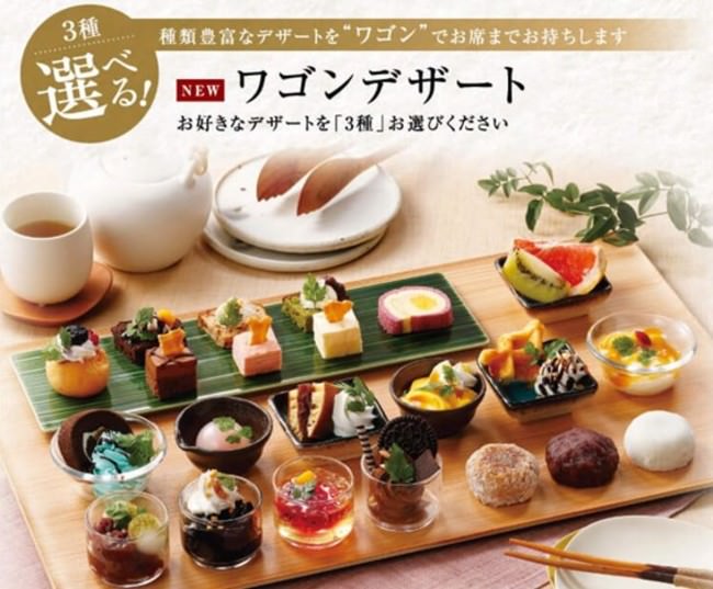 また和・洋種類豊富なデザートが3種選べる“ワゴンデザート”も同時にスタート!
