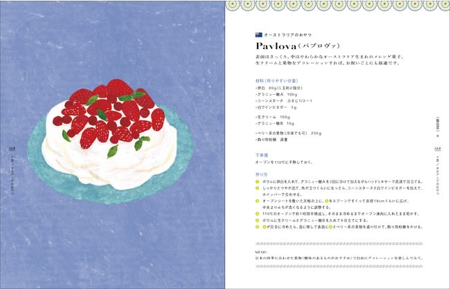 アジア・中東・アフリカ・アメリカ・ヨーロッパなど…世界各国に伝わるおやつ100品を、おうちで作れるレシピとともに紹介します。著者は、50カ国以上を旅しながら世界のお菓子500種類以上を学んだ“旅するパティシエ”鈴木文。お馴染みのおやつから一風変わったおやつまで、見て、作って楽しめる1冊です。