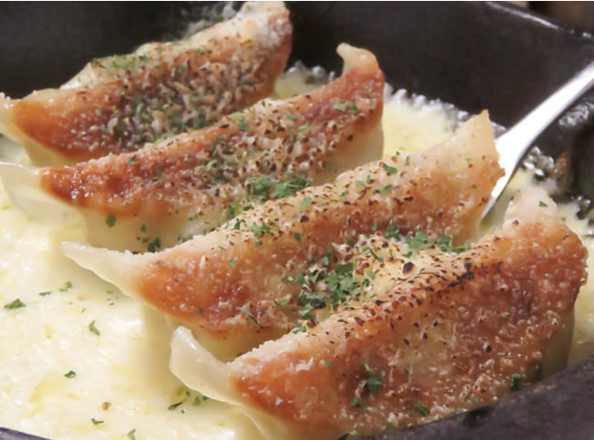 熱々のぎょうざとチーズをご一緒に!チーズとぎょうざの相性は抜群です。 女性人気No.1パリッパリの羽根と濃厚なチーズの今までにない絶妙な味わいをご堪能下さい。