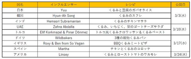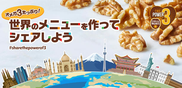 今年で2年目となる本キャンペーンは、アメリカ本国をはじめ当協会が代表事務所を置く日本、ドイツ、インド、韓国、スペイン、トルコ、イギリス、UAEの計9か国が連携し、世界のメニューを通してくるみに豊富に含まれるオメガ3脂肪酸(α-リノレン酸=ALA)を日々の食事に取り入れるアイデアを紹介するものです。各国の料理研究家やインフルエンサーにより開発されたレシピを、ビデオと協会ホームページの特設ページを中心に、店頭プロモーション、広告など各国様々なコミュニケーションツールで紹介します。また、ソーシャルメディアを通じたフォトコンテスト等、消費者参加型のプログラムを展開してまいります。
