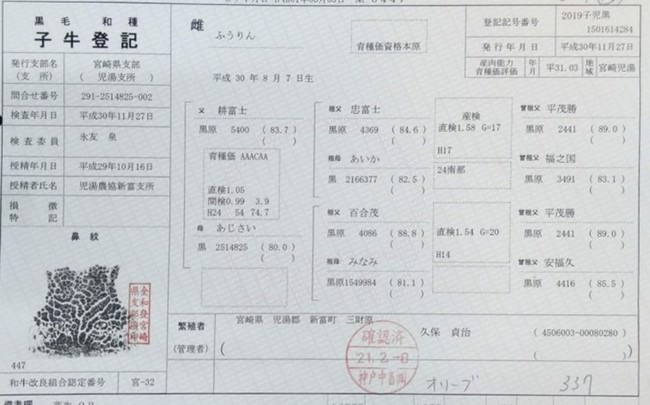 第81 回香川銘牛会共励会最優秀賞牛「ふうりん」