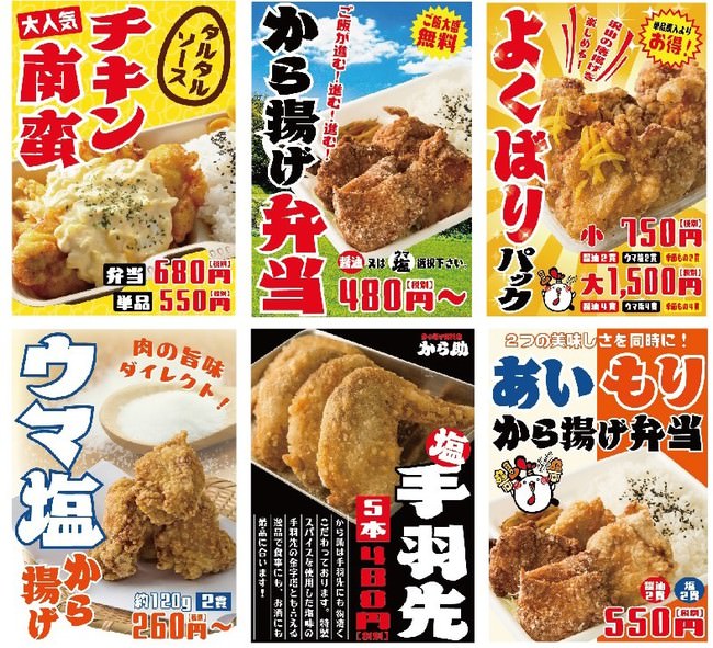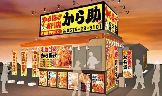 昨年7月に一宮店、9月に岐阜茜部店、12月に美濃加茂店、本年1月に春日井西山、多治見宝町店がOPENし、地元の方に愛されている『から揚げ専門店 から助』の6号店が岐阜県関市に誕生致しました。『ザク旨』『肉汁ジュワ~』な揚げたてのジャンボ唐揚げをご提供いたします。名物の醤油から揚げと、ウマ塩から揚げ、チキン南蛮を、そのままでも弁当でもお楽しみください。食事にも!お酒にも抜群の相性の塩手羽先も おススメです。