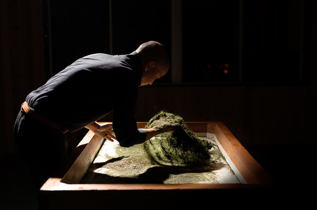 普段は機械で1時間で300kgのお茶を火入れすることができますが、炭火の茶をつくるのには火入れを開始してから1時間当たりで1.5kgです。その製造効率はわずか0.5%。茶師が五感を使いわずか3kgのお茶だけに集中して丁寧に仕上げています。