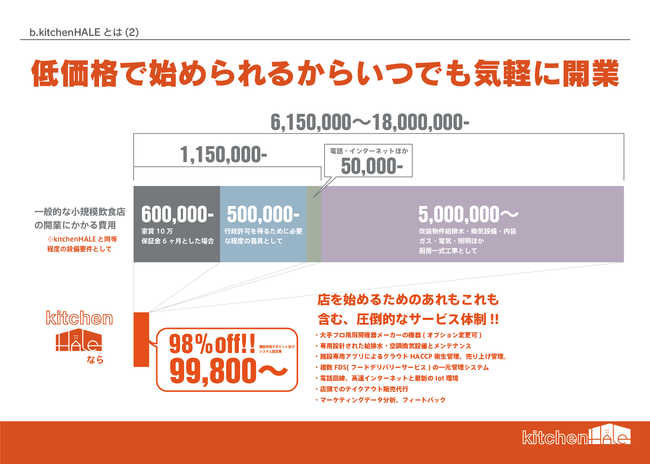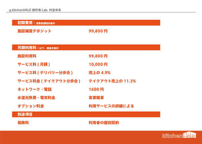 4月にKitchen HALE1号店(御所南Lab)をオープンし、お問い合わせ多数のため、京都、東京他、全国でクラウドキッチンの出店を続々計画中のHALE JAPAN株式会社(所在地:京都市、代表取締役:安田睦)が、料金を大公開致します。