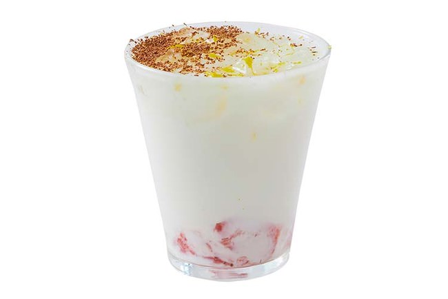 「久保田 純米大吟醸」に、カカオ分45%のホワイトチョコレート、ミルクがまろやかに溶け込む新感覚ドリンク。いちごのコンポート、削りたての柚子&ハイカカオチョコのトッピングが、純米大吟醸の甘さとコクを引き立てます。