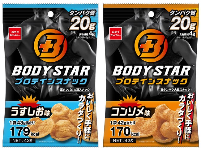 そこでおやつカンパニーは、ベビースターをはじめとするユニークで美味しい“おやつ”を提供し続けてきたスナック菓子の製造ノウハウを活かした、美味しく楽しみながら手軽に栄養補給ができる新ブランド『BODY STAR』として「タンパク質」に着目した商品を展開します。
