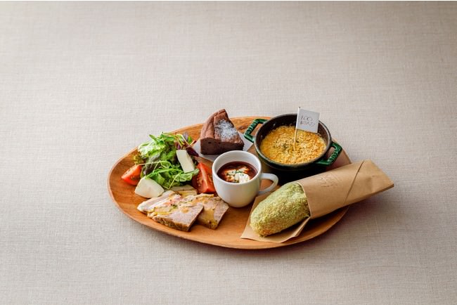 子どもたちが大人に食べてもらいたい理想の給食をイメージしながらメニューアイデアを出し、シェフがそれを100本のスプーンらしく仕立て完成したプレートを、ぜひご家族でお楽しみください。