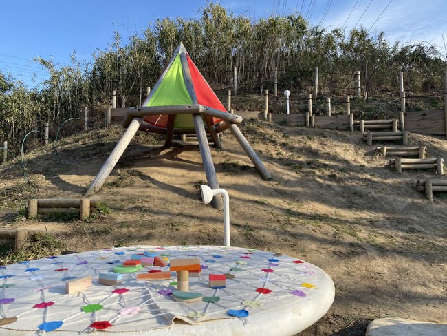 公園でのさまざまな過ごし方、遊び方をご提案するプロジェクト。小屋にカラフルな屋根を張れば小さなテントの出来上がり。丘の上のブランコでのんびりするもよし、手作りのオセロで遊ぶもよし。思い思いにお過ごしください。