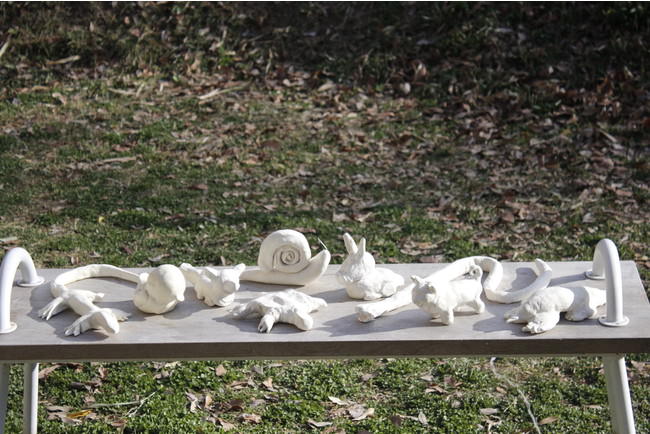 公園で「白い生き物たちを探せ」。プロジェクトメンバー一人ひとりが作った作品が、公園のあちらこちらに隠れています。全部で9つの小さな生き物たち。100本のスプーン AZAMINOにご来店の際には、ぜひ探してみてください。