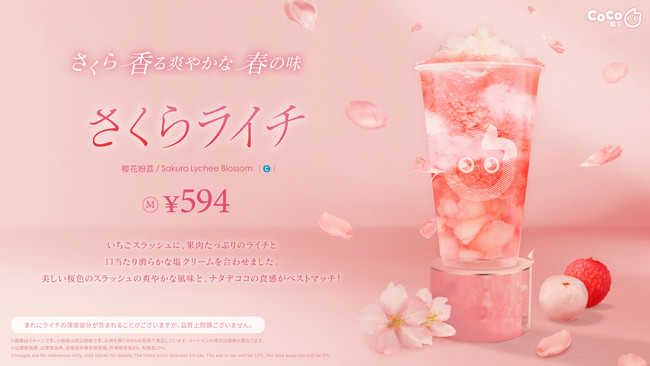 CoCo都可は、春を楽しめるドリンクとして、さくらやライチ、いちごをふんだんに使用した商品を発売いたします。