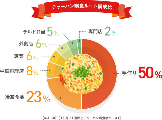 チャーハン喫食機会の半分は「手作り」!ただし、「冷凍食品」の伸び率が圧倒的1位!