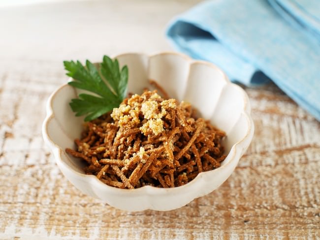 【*発酵性食物繊維量:2.2g *オールブラン由来 (食物繊維総量:6.4g)】 【調理時間:2~3分(千切り時間除く)】