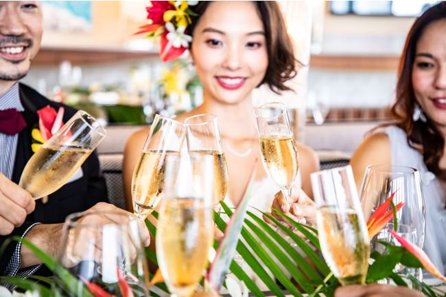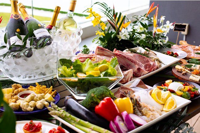 ご披露宴では、テラスエリアで、ゲストをBBQでおもてなしすることができます。あぐー豚の骨付きロースやカジキマグロなど、沖縄の豊かな食材を大胆にシェフが炭火焼きにいたします。また前菜には、シーフードを中心とした色とりどりのお料理が並びます。さらに、イタリアで修業を重ねたピッツァイオーロが薪窯で焼き上げるピッツァもご用意。また、ご披露宴の前には、併設されたバーでウェルカムパーティーも可能。沖縄のフルーツを使ったカクテルや、フィンガーフードをご用意いたします。デザートはマーメイドの世界をイメージしたかわいらしいスイーツをお楽しみいただくことができます。沖縄で気軽に、楽しく、自由なスタイルでご結婚式をされたい新郎新婦にぴったりのプランです。