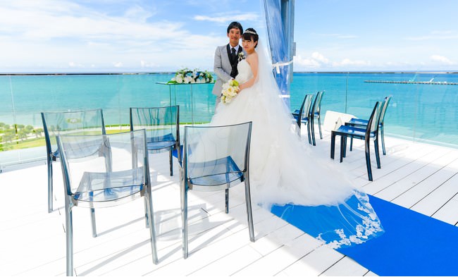 沖縄の優しい風に祝福されながら、挙式を行うことができます。