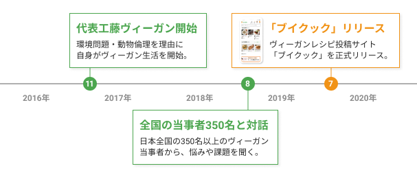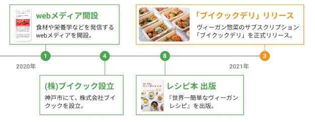 2020年4月に株式会社ブイクックを設立し、webメディア開設、レシピ本の出版、レシピ検索できる公式LINEアカウント開設など、主にヴィーガンレシピ情報の蓄積・発信を行なってきました。