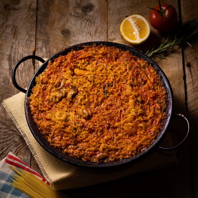 【1】薪窯が豪快に焚き上げる!スペインの名物料理「パスタパエリア」