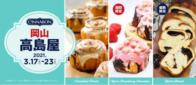 JR九州ファーストフーズ株式会社(所在地:福岡県福岡市、代表取締役社長:永田史朗)は、岡山高島屋でシナモンロール専門店「シナボン」の臨時出張販売を、感染予防対策を行いながら開催します。