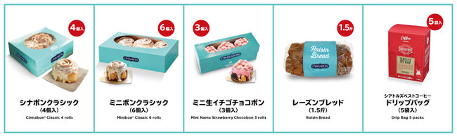 定番の「シナボンクラシック」をはじめ、一部店舗限定の「レーズンブレッド」、さらに新商品「生イチゴチョコボン」をご用意しております!
