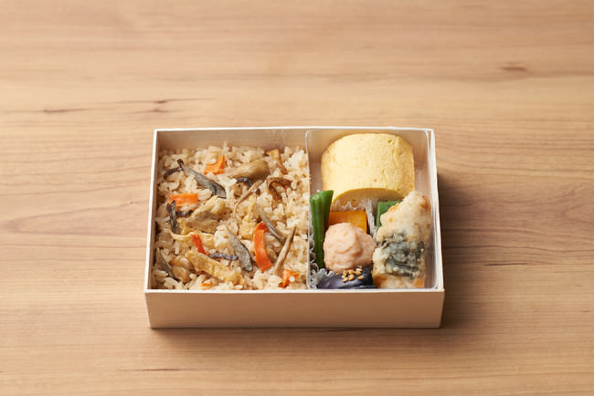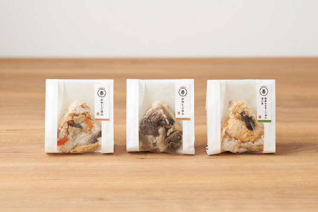オープン時に販売しているかやくごはん:鶏と五目、和牛とごぼう、筍と実山椒、粕漬け鯛、うにと帆立