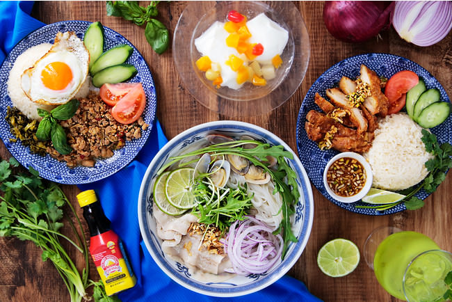 <カオマンガイ+ミニフォー>など、あれもこれもが楽しめるセットメニューもご用意。