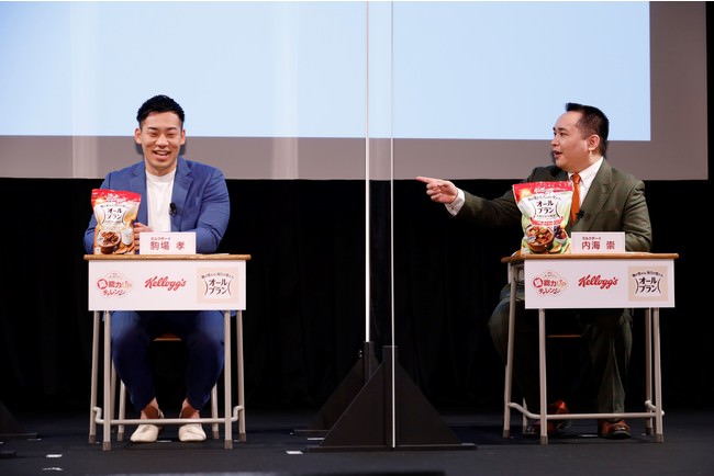 今回の発酵性食物繊維のネタはミルクボーイ史上最高難度でした!ただでさえ難しい言葉を連発するので、嚙まないようにするのが大変でしたし、ネタを考えるにあたって、僕らも発酵性食物繊維ってなんや?についてイチから勉強しました。この度、晴れて「腸能力アップチャレンジ」の第一号チャレンジャーにも認定されたばかりですので、僕たちも毎日オールブランを食べて、おかんと一緒に腸能力高めようと思います!!