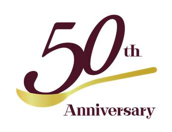 50周年記念のロゴにあしらわれた「金のスプーン」は、食べてくださる方にとって、上質で特別な存在でありたい、という発売当時からロゴの中に忍ばせている大切な想い「FIT FOR A GOLDEN SPOON」を形にしたロゴマークです。