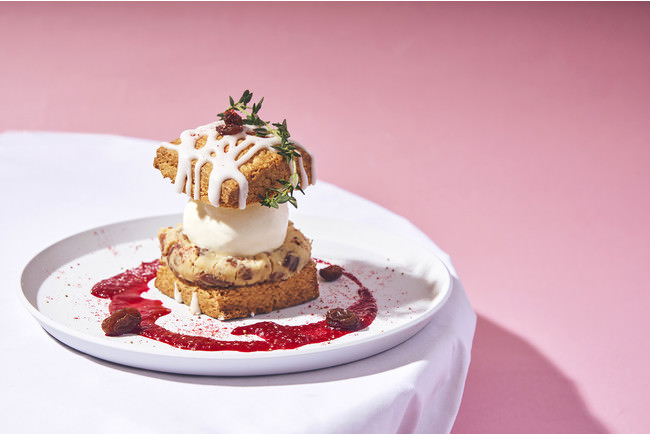 ビブリオテークオリジナルのパンケーキミックスを使用してつくられたスコーンに、“発酵”バターを惜しみなくつかった特製「いちご“発酵”バター」とフレッシュいちご、濃厚カスタードとバニラアイスクリームをたっぷり贅沢にサンド。アクセントの塩とフレッシュいちごの甘酸っぱさが決め手です。