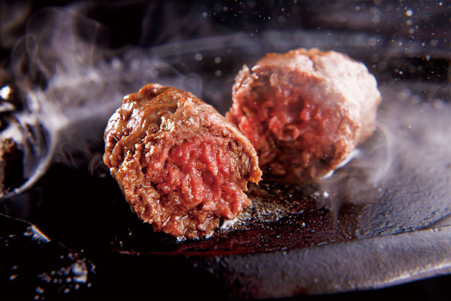 さらに、より美味しく和牛を楽しんでいただけるように、炭火で表面をカリっと焼き、中に脂を閉じ込めたレア状態でご提供いたします。石焼のペレットで、お好きな焼き加減で、アツアツのままお召し上がりください。