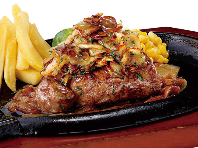 ステーキやハンバーグなど、全てのメニューにトッピングいただけます。全ガーリック好きに捧ぐ、お肉とガーリックのマリアージュ、お楽しみください。