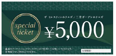 ※ レストランチケットは5,000円チケットを1枚お渡しします。ショッピングチケットは1,500円チケットを2枚お渡しいたします。