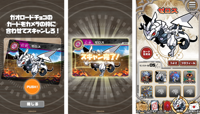 「ガオロード ワールド」は、『超獣戯牙ガオロードチョコ』に入っているカードをスマートフォンのカメラで読み込み、アプリ内の図鑑でキャラクターをコレクションできます。第0弾では、獣王界を廻るストーリーモードを進めガオロードの謎を読み解くなどお楽しみいただけます。