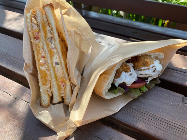 中東風コロッケ「ファラフェル」や、ハーブやスパイスが効いたヒヨコ豆のペーストを使用したベジタリアンサンド。