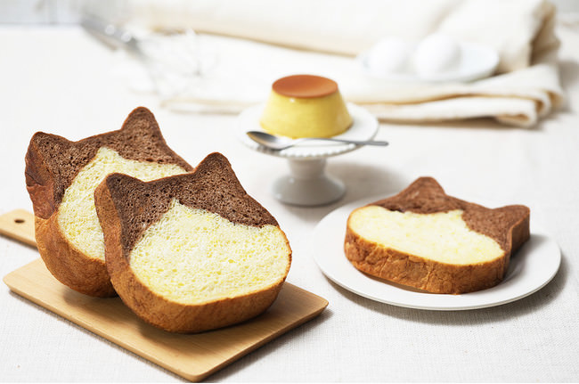 4月は子どもから大人まで人気のデザート「プリン」を表現したねこねこ食パンが登場!甘いカスタード風味の生地と、ほろ苦いカラメル生地で見た目も味もプリンを目指しました。ねこねこ食パン特徴のミルキーな生地に、プリンを再現した生地が相性抜群!ひと口頬張ると、プリンを食べたような幸せな気分に。まるでデザートのような期間限定の「ねこねこ食パン プリン」をお楽しみください。