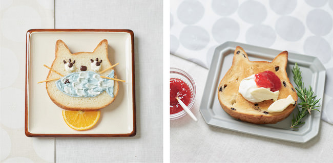 ねこねこ食パン定番ラインナップ(プレーン、チョコ、チーズ、こしあん、三毛猫など)の他、ねこねこフレンチトーストや期間限定フレーバー等ございます。※猫の殺処分ゼロを目指して「ねこねこ食パン」売上1本につき1円を当社より動物愛護センターに寄付いたします。