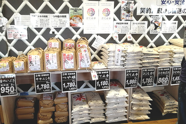 自社で精米工場を保有するからこそ出来る、種類豊富でリーズナブルな宮城県産のお米も魅力のひとつです。宮城県産のひとめぼれ、つや姫、だて正夢など各種精米・玄米を取り扱う他、あじわいの朝オリジナルブレンドの「日本の味」も根強い人気を誇ります。