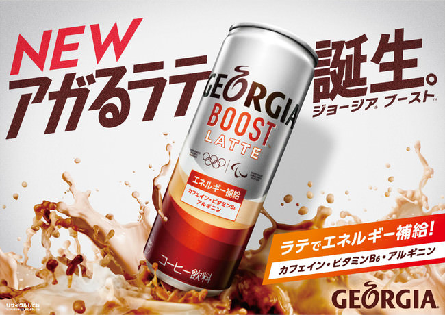 コーヒー由来のカフェインに加えて、ビタミンB6とアルギニンを配合したカフェラテ「ジョージア ブースト」